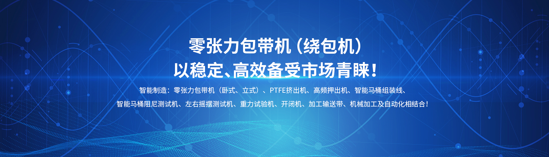 主要產(chǎn)品:押出機(jī)、包帶機(jī)、PTFE擠出機(jī)、智能電子坐便器組裝線、電子坐便器老化試驗(yàn)臺、阻尼耐久試驗(yàn)機(jī)…